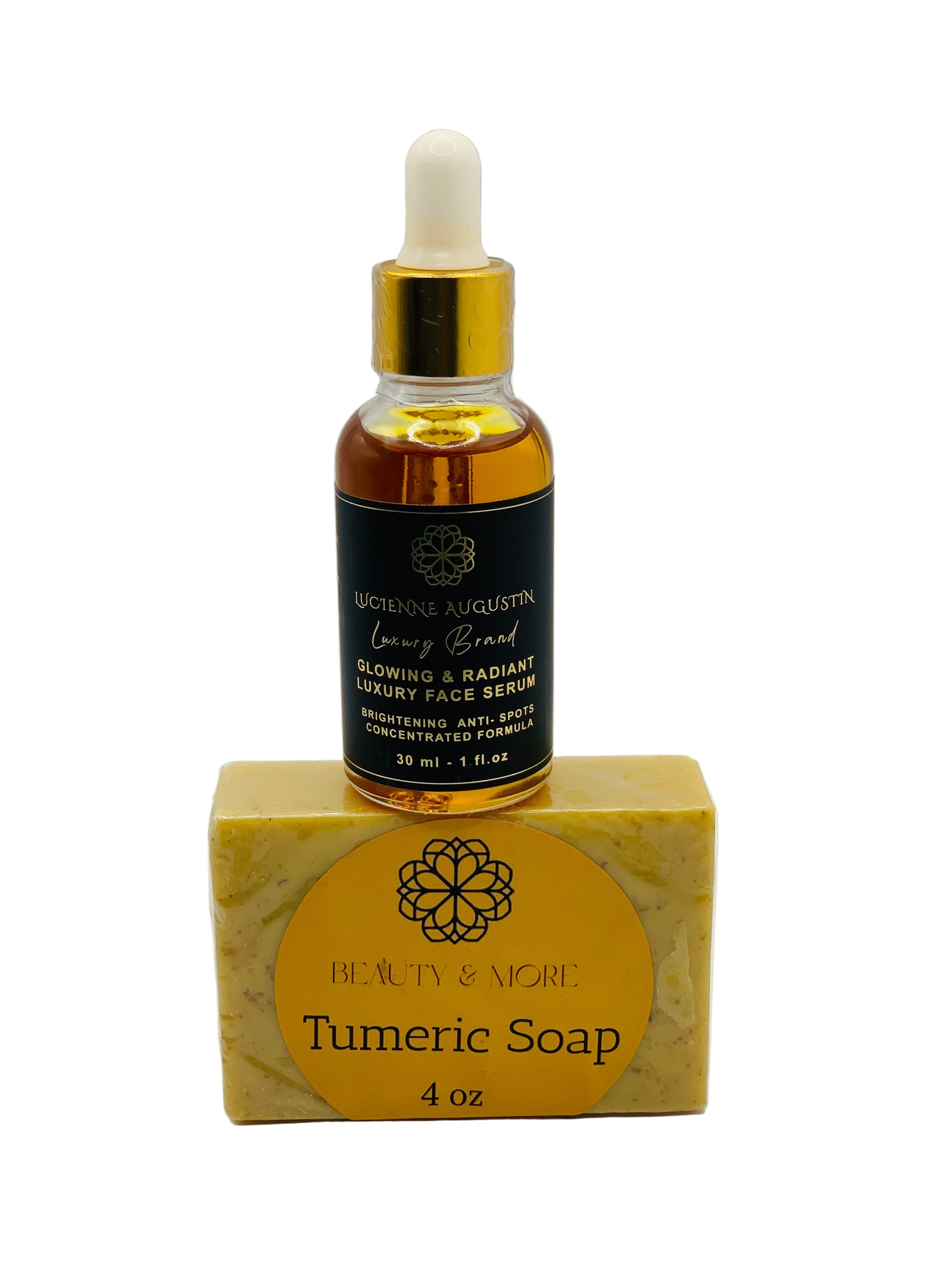 Includes 4oz Turmeric Soap and 1 FL OZ of Brightening Glow Serum